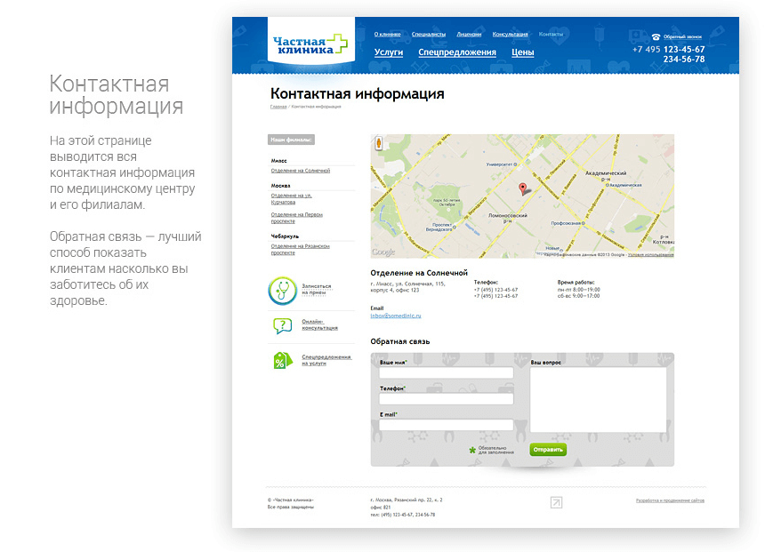 - составили структуру сайта (главная, услуги, специалисты, статьи, акции, контакты)