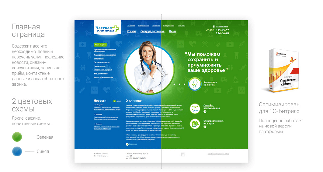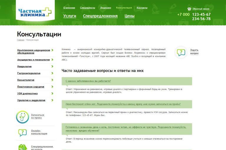 Клиент получил современный корпоративный сайт китайской традиционной медицины с 23 видами услуг (от нарушения обмена веществ до детских заболеваний), разделом из 30 специалистов учреждения и блоком с новостями и акциями.